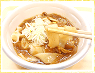 ふるくは小麦の生産量トップクラスだった関東圏、その中でも小麦の生産が盛んだったのが群馬県です。そんな小麦大国・群馬県にはさまざまな小麦麺文化が伝えられていますが、今回はその中でもカレーうどん発祥の地・桐生から「ひもかわカレーうどん」が登場。麺幅約2cmの幅広い平打ち麺「ひもかわうどん」は、少々煮込んでも崩れないしっかりとしたコシが特徴で、口の中いっぱいに広がる独特の食感が楽しめます。