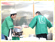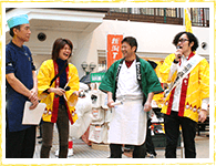 場内の中央に組まれた特設ステージでは、「味くらべうんちく合戦」がスタート。新潟発祥「イタリアン」の中でもその生みの親、喫茶店「みかづき」が、いかに地元・新潟で愛されてきたかを語れば、桐生麺類商組合からは「ひもかわうどん」はなんと、平安という悠久の時代を経てきた伝統料理だと応答。会場からは「それなら食べてみたい!」と声が上がります。