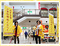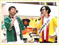今回はイベントMCとして吉本興業の「新潟県住みます芸人」関田さんが軽快なトークで盛り上げてくれます!ほかにも応援団として、桐生市の近代化遺産であるのこぎり屋根の工場をモチーフにしたゆるキャラ「キノピー」が群馬から駆けつけてくれました!そして、地元の新潟からは県鳥である朱鷺をモチーフにしたつがいのキャラクター「トッキッキー」も遊びに来てくれました~!