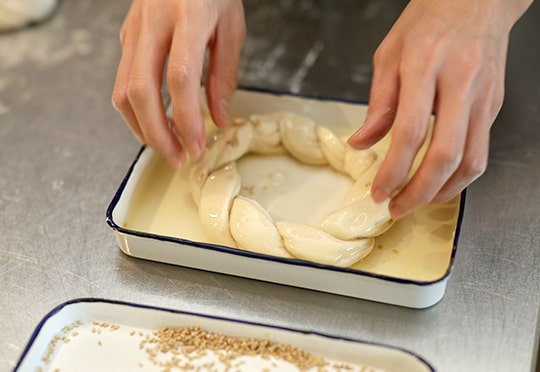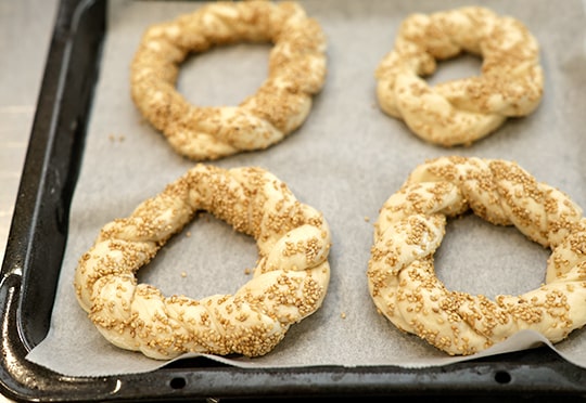 料理家 冷水希三子さんの小麦粉料理レシピです。ごまの風味がこんなにも味わえる料理はそうそうありません。シミットは、ごまをたっぷりまとわせて焼き上げる、トルコの街角で愛されるリング型のパン。シロップに漬けて焼くほんのり甘い生地が胡麻の香ばしさとあいまって、豊かな風味を楽しめる一品。もっちりとした食感で食べごたえがあり、朝食にもぴったりです。